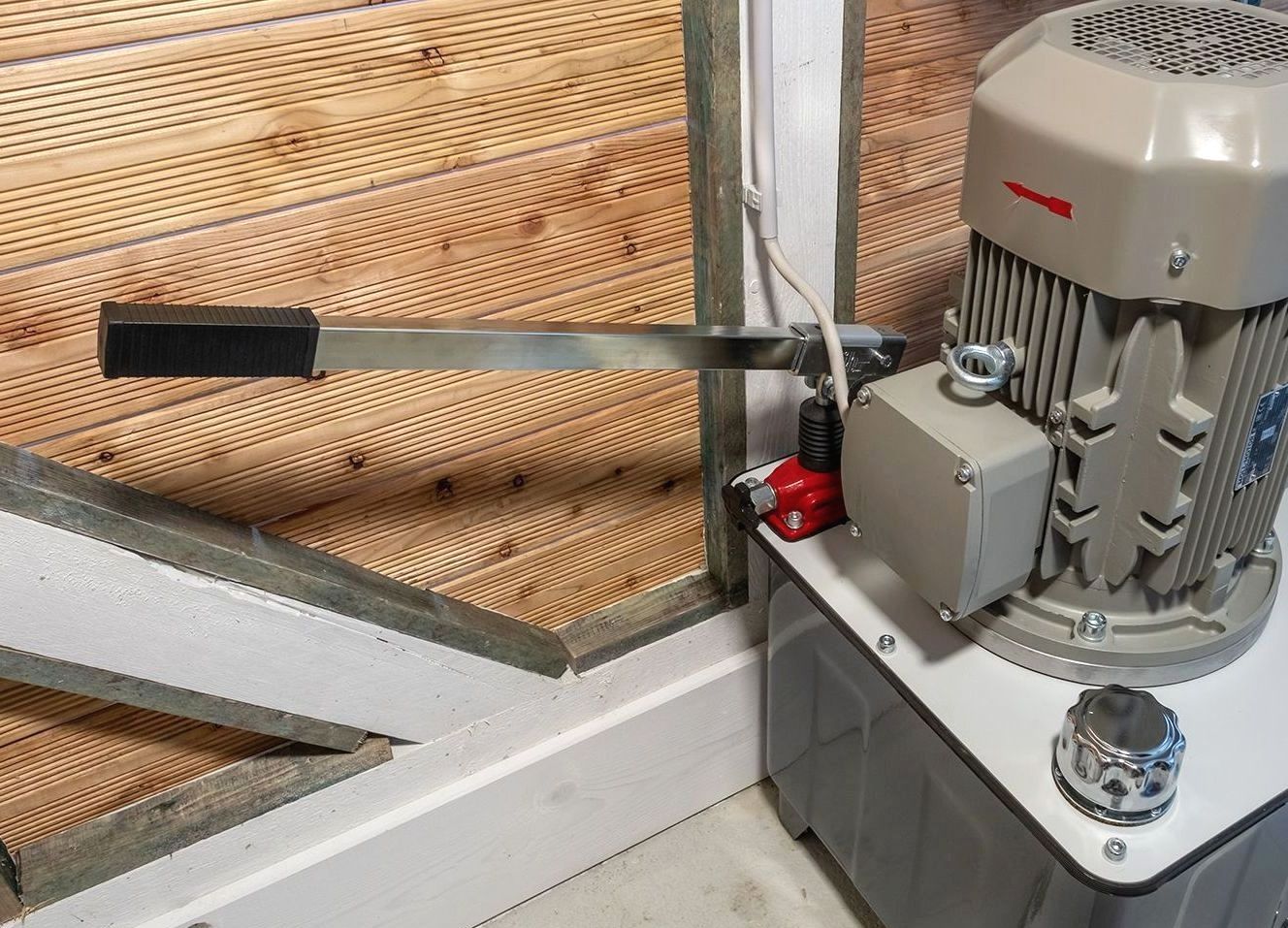 Jederzeit fahrbereit durch manuelle Bedienung. Heben und Senken ohne Strom.